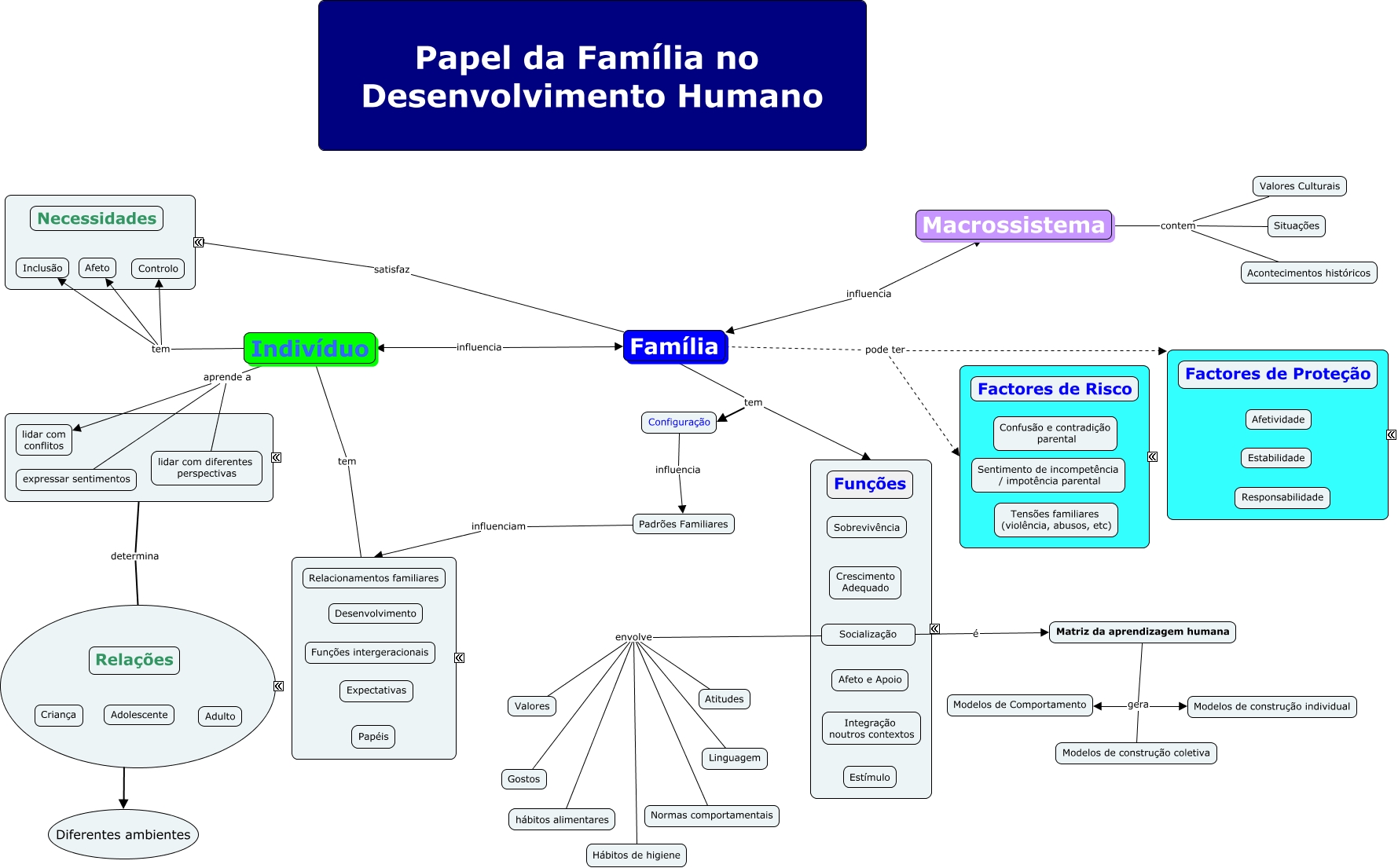 Esse mapa conceitual, produzido no IHMC CmapTools, tem a informação relacionada a: Cláudia Rodrigues 1100719 T3, Socialização envolve Normas comportamentais, Matriz da aprendizagem humana gera Modelos de Comportamento, Família tem ????, Socialização envolve Atitudes, Indivíduo tem ????, Indivíduo aprende a lidar com diferentes perspectivas, Indivíduo aprende a expressar sentimentos, Valores Culturais contem Macrossistema, Família tem Configuração, Socialização envolve Gostos, ???? determina ????, Padrões Familiares influenciam ????, Indivíduo tem Afeto, Família pode ter ????, Situações contem Macrossistema, Família pode ter ????, Indivíduo tem Inclusão, Socialização é Matriz da aprendizagem humana, Família satisfaz ????, Configuração influencia Padrões Familiares
