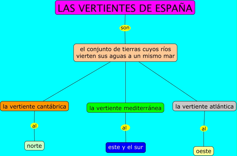 Este Cmap, tiene información relacionada con: Las vertientes de España, el conjunto de tierras cuyos ríos vierten sus aguas a un mismo mar la vertiente cantábrica, el conjunto de tierras cuyos ríos vierten sus aguas a un mismo mar la vertiente mediterránea, la vertiente mediterránea al este y el sur, la vertiente cantábrica al norte, LAS VERTIENTES DE ESPAÑA son el conjunto de tierras cuyos ríos vierten sus aguas a un mismo mar, el conjunto de tierras cuyos ríos vierten sus aguas a un mismo mar la vertiente atlántica, la vertiente atlántica al oeste