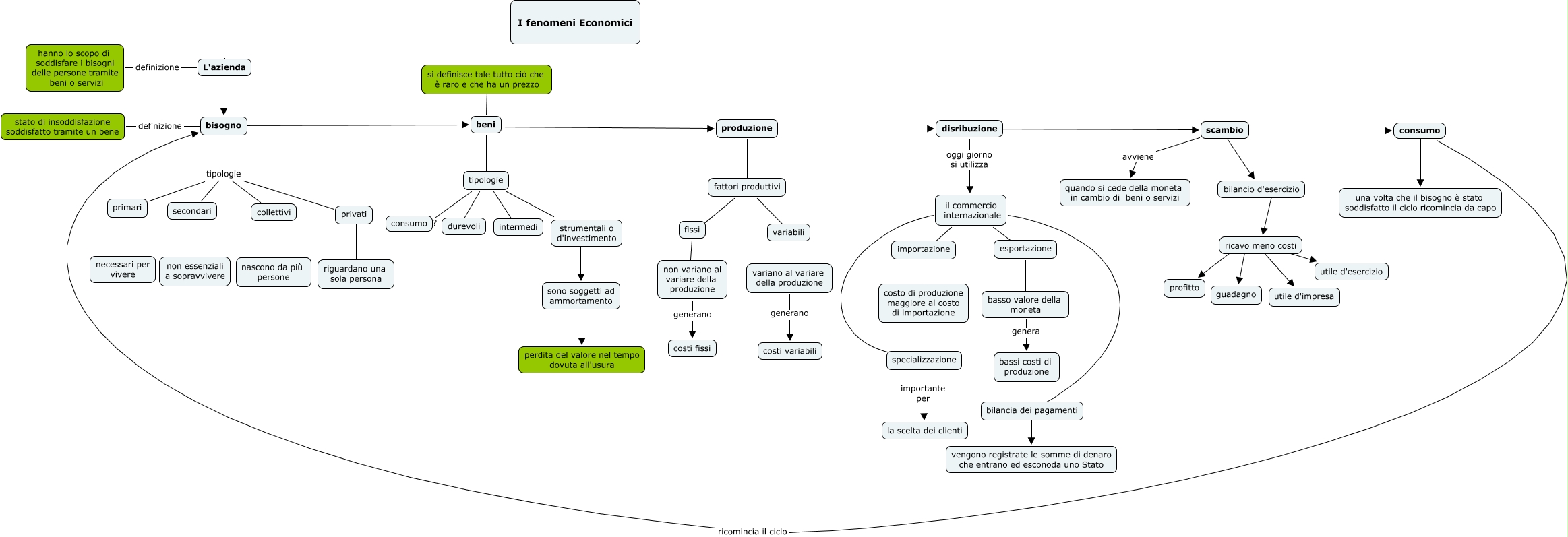 Questa Cmap, creata con IHMC CmapTools, contiene informazioni relative a: Fenomeni Economici, non variano al variare della produzione generano costi fissi, variano al variare della produzione generano costi variabili, disribuzione ???? scambio, L'azienda definizione hanno lo scopo di soddisfare i bisogni delle persone tramite beni o servizi, privati ???? riguardano una sola persona, disribuzione oggi giorno si utilizza il commercio internazionale, beni ???? si definisce tale tutto ciò che è raro e che ha un prezzo, scambio ???? consumo, bisogno definizione stato di insoddisfazione soddisfatto tramite un bene, strumentali o d'investimento ???? sono soggetti ad ammortamento, bilancia dei pagamenti ???? vengono registrate le somme di denaro che entrano ed esconoda uno Stato, bisogno tipologie collettivi, fattori produttivi ???? variabili, bisogno tipologie secondari, fattori produttivi ???? fissi, collettivi ???? nascono da più persone, bisogno ???? beni, fissi ???? non variano al variare della produzione, produzione ???? fattori produttivi, basso valore della moneta genera bassi costi di produzione