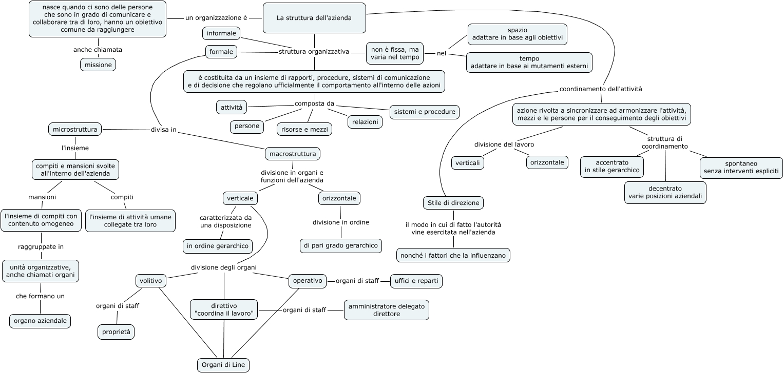 Questa Cmap, creata con IHMC CmapTools, contiene informazioni relative a: Struttura Azienda, è costituita da un insieme di rapporti, procedure, sistemi di comunicazione e di decisione che regolano ufficialmente il comportamento all'interno delle azioni composta da risorse e mezzi, è costituita da un insieme di rapporti, procedure, sistemi di comunicazione e di decisione che regolano ufficialmente il comportamento all'interno delle azioni composta da attività, operativo ???? Organi di Line, azione rivolta a sincronizzare ad armonizzare l'attività, mezzi e le persone per il conseguimento degli obiettivi divisione del lavoro orizzontale, non è fissa, ma varia nel tempo nel spazio adattare in base agli obiettivi, compiti e mansioni svolte all'interno dell'azienda mansioni l'insieme di compiti con contenuto omogeneo, l'insieme di compiti con contenuto omogeneo raggruppate in unità organizzative, anche chiamati organi, unità organizzative, anche chiamati organi che formano un organo aziendale, formale divisa in microstruttura, macrostruttura divisione in organi e funzioni dell'azienda verticale, azione rivolta a sincronizzare ad armonizzare l'attività, mezzi e le persone per il conseguimento degli obiettivi divisione del lavoro verticali, è costituita da un insieme di rapporti, procedure, sistemi di comunicazione e di decisione che regolano ufficialmente il comportamento all'interno delle azioni composta da sistemi e procedure, microstruttura l'insieme compiti e mansioni svolte all'interno dell'azienda, azione rivolta a sincronizzare ad armonizzare l'attività, mezzi e le persone per il conseguimento degli obiettivi struttura di coordinamento decentrato varie posizioni aziendali, azione rivolta a sincronizzare ad armonizzare l'attività, mezzi e le persone per il conseguimento degli obiettivi struttura di coordinamento accentrato in stile gerarchico, verticale divisione degli organi direttivo "coordina il lavoro", verticale divisione degli organi volitivo, è costituita da un insieme di rapporti, procedure, sistemi di comunicazione e di decisione che regolano ufficialmente il comportamento all'interno delle azioni composta da persone, azione rivolta a sincronizzare ad armonizzare l'attività, mezzi e le persone per il conseguimento degli obiettivi struttura di coordinamento spontaneo senza interventi espliciti, macrostruttura divisione in organi e funzioni dell'azienda orizzontale