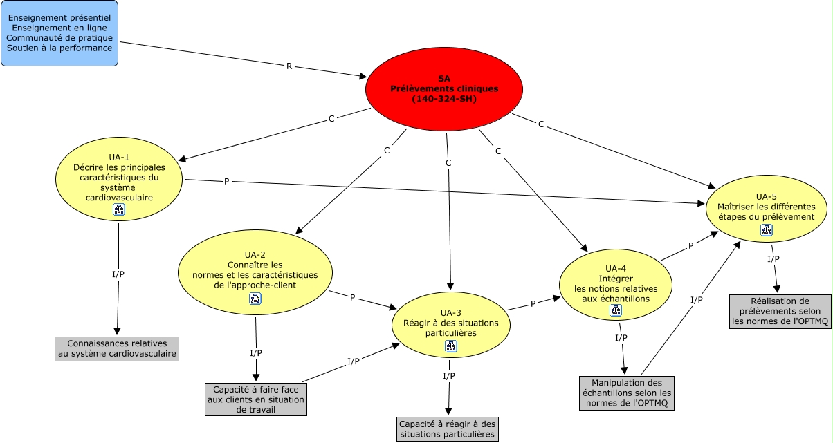 Cette carte de concepts créée avec IHMC CmapTools traite de: SA, Capacité à faire face aux clients en situation de travail I/P UA-3 Réagir à des situations particulières, UA-2 Connaître les normes et les caractéristiques de l'approche-client I/P Capacité à faire face aux clients en situation de travail, SA Prélèvements cliniques (140-324-SH) C UA-3 Réagir à des situations particulières, UA-2 Connaître les normes et les caractéristiques de l'approche-client P UA-3 Réagir à des situations particulières, UA-5 Maîtriser les différentes étapes du prélèvement I/P Réalisation de prélèvements selon les normes de l'OPTMQ, UA-4 Intégrer les notions relatives aux échantillons I/P Manipulation des échantillons selon les normes de l'OPTMQ, UA-4 Intégrer les notions relatives aux échantillons P UA-5 Maîtriser les différentes étapes du prélèvement, SA Prélèvements cliniques (140-324-SH) C UA-1 Décrire les principales caractéristiques du système cardiovasculaire, Enseignement présentiel Enseignement en ligne Communauté de pratique Soutien à la performance R SA Prélèvements cliniques (140-324-SH), UA-1 Décrire les principales caractéristiques du système cardiovasculaire P UA-5 Maîtriser les différentes étapes du prélèvement, SA Prélèvements cliniques (140-324-SH) C UA-4 Intégrer les notions relatives aux échantillons, UA-1 Décrire les principales caractéristiques du système cardiovasculaire I/P Connaissances relatives au système cardiovasculaire, SA Prélèvements cliniques (140-324-SH) C UA-5 Maîtriser les différentes étapes du prélèvement, Manipulation des échantillons selon les normes de l'OPTMQ I/P UA-5 Maîtriser les différentes étapes du prélèvement, SA Prélèvements cliniques (140-324-SH) C UA-2 Connaître les normes et les caractéristiques de l'approche-client, UA-3 Réagir à des situations particulières I/P Capacité à réagir à des situations particulières, UA-3 Réagir à des situations particulières P UA-4 Intégrer les notions relatives aux échantillons