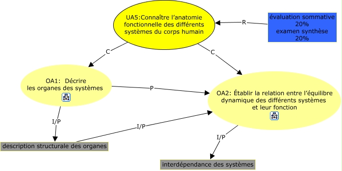Cette carte de concepts créée avec IHMC CmapTools traite de: UA5, évaluation sommative 20% examen synthèse 20% R UA5:Connaître l’anatomie fonctionnelle des différents systèmes du corps humain, description structurale des organes I/P OA2: Établir la relation entre l’équilibre dynamique des différents systèmes et leur fonction, OA2: Établir la relation entre l’équilibre dynamique des différents systèmes et leur fonction I/P interdépendance des systèmes, UA5:Connaître l’anatomie fonctionnelle des différents systèmes du corps humain C OA1: Décrire les organes des systèmes, OA1: Décrire les organes des systèmes P OA2: Établir la relation entre l’équilibre dynamique des différents systèmes et leur fonction, OA1: Décrire les organes des systèmes I/P description structurale des organes, UA5:Connaître l’anatomie fonctionnelle des différents systèmes du corps humain C OA2: Établir la relation entre l’équilibre dynamique des différents systèmes et leur fonction