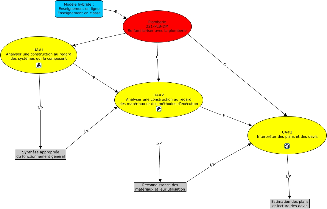 Cette carte de concepts créée avec IHMC CmapTools traite de: SA, UA#1 Analyser une construction au regard des systèmes qui la composent I/P Synthèse appropriée du fonctionnement général, UA#2 Analyser une construction au regard des matériaux et des méthodes d’exécution P UA#3 Interpréter des plans et des devis, Reconnaissance des matériaux et leur utilisation I/P UA#3 Interpréter des plans et des devis, Plomberie 221-PLB-DM Se familiariser avec la plomberie C UA#3 Interpréter des plans et des devis, Plomberie 221-PLB-DM Se familiariser avec la plomberie C UA#1 Analyser une construction au regard des systèmes qui la composent, Synthèse appropriée du fonctionnement général I/P UA#2 Analyser une construction au regard des matériaux et des méthodes d’exécution, Modèle hybride : Enseignement en ligne Enseignement en classe R Plomberie 221-PLB-DM Se familiariser avec la plomberie, Plomberie 221-PLB-DM Se familiariser avec la plomberie C UA#2 Analyser une construction au regard des matériaux et des méthodes d’exécution, UA#3 Interpréter des plans et des devis I/P Estimation des plans et lecture des devis, UA#2 Analyser une construction au regard des matériaux et des méthodes d’exécution I/P Reconnaissance des matériaux et leur utilisation, UA#1 Analyser une construction au regard des systèmes qui la composent P UA#2 Analyser une construction au regard des matériaux et des méthodes d’exécution