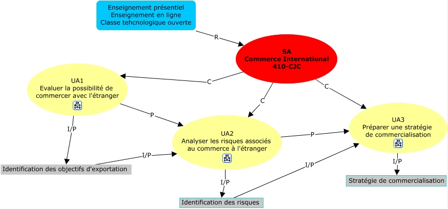 Cette carte de concepts créée avec IHMC CmapTools traite de: CommerceInternational_MAudePelletier, SA Commerce International 410-CJC C UA2 Analyser les risques associés au commerce à l'étranger, UA2 Analyser les risques associés au commerce à l'étranger P UA3 Préparer une stratégie de commercialisation, Identification des risques I/P UA3 Préparer une stratégie de commercialisation, SA Commerce International 410-CJC C UA1 Evaluer la possibilité de commercer avec l'étranger, UA1 Evaluer la possibilité de commercer avec l'étranger P UA2 Analyser les risques associés au commerce à l'étranger, Enseignement présentiel Enseignement en ligne Classe tehcnologique ouverte R SA Commerce International 410-CJC, SA Commerce International 410-CJC C UA3 Préparer une stratégie de commercialisation, UA1 Evaluer la possibilité de commercer avec l'étranger I/P Identification des objectifs d'exportation, UA3 Préparer une stratégie de commercialisation I/P Stratégie de commercialisation, Identification des objectifs d'exportation I/P UA2 Analyser les risques associés au commerce à l'étranger, UA2 Analyser les risques associés au commerce à l'étranger I/P Identification des risques