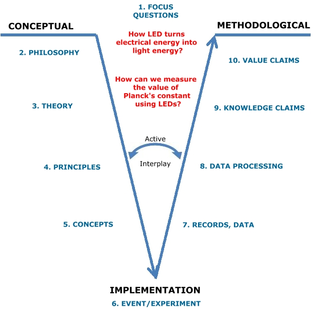 This Concept Map, created with IHMC CmapTools, has information related to: Basically structure of Gowin's Vee heuristic used as template