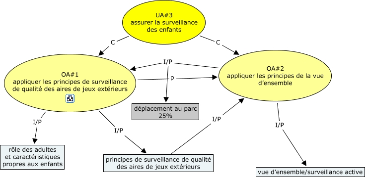 Cette carte de concepts créée avec IHMC CmapTools traite de: OA3, OA#1 appliquer les principes de surveillance de qualité des aires de jeux extérieurs p OA#2 appliquer les principes de la vue d’ensemble, OA#2 appliquer les principes de la vue d’ensemble I/P OA#1 appliquer les principes de surveillance de qualité des aires de jeux extérieurs, principes de surveillance de qualité des aires de jeux extérieurs I/P OA#2 appliquer les principes de la vue d’ensemble, OA#2 appliquer les principes de la vue d’ensemble I/P vue d’ensemble/surveillance active, OA#1 appliquer les principes de surveillance de qualité des aires de jeux extérieurs I/P principes de surveillance de qualité des aires de jeux extérieurs, OA#1 appliquer les principes de surveillance de qualité des aires de jeux extérieurs I/P rôle des adultes et caractéristiques propres aux enfants, UA#3 assurer la surveillance des enfants C OA#2 appliquer les principes de la vue d’ensemble, OA#2 appliquer les principes de la vue d’ensemble I/P déplacement au parc 25%, UA#3 assurer la surveillance des enfants C OA#1 appliquer les principes de surveillance de qualité des aires de jeux extérieurs