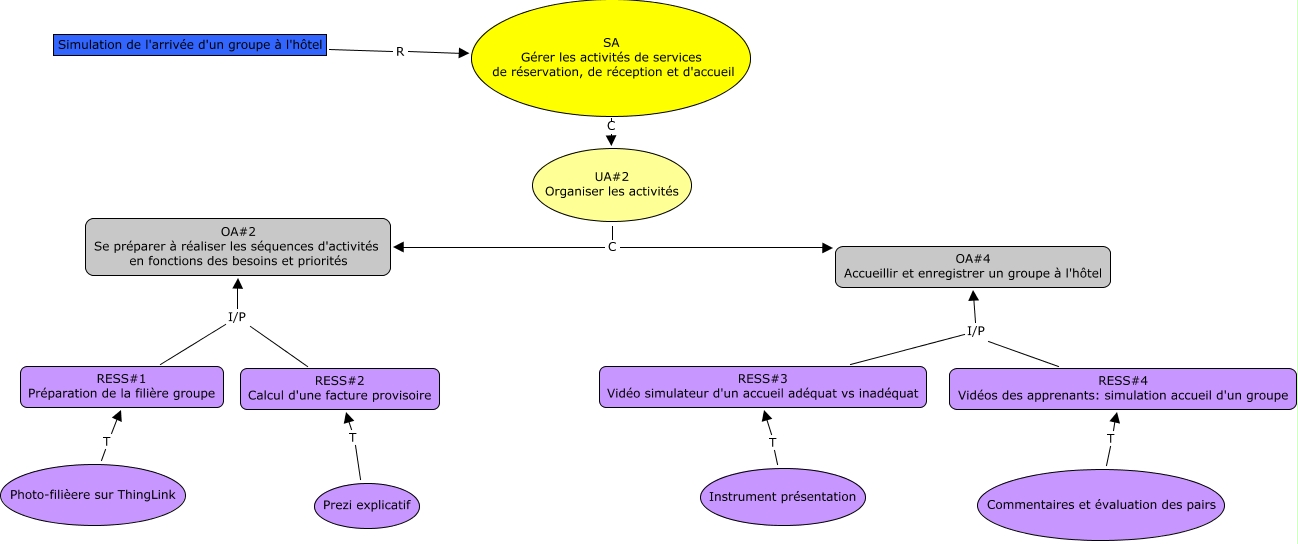 Cette carte de concepts créée avec IHMC CmapTools traite de: Hebert_J_CMAP_En_Ligne, RESS#3 Vidéo simulateur d'un accueil adéquat vs inadéquat I/P OA#4 Accueillir et enregistrer un groupe à l'hôtel, Prezi explicatif T RESS#2 Calcul d'une facture provisoire, SA Gérer les activités de services de réservation, de réception et d'accueil C UA#2 Organiser les activités, Commentaires et évaluation des pairs T RESS#4 Vidéos des apprenants: simulation accueil d'un groupe, RESS#4 Vidéos des apprenants: simulation accueil d'un groupe I/P OA#4 Accueillir et enregistrer un groupe à l'hôtel, Simulation de l'arrivée d'un groupe à l'hôtel R SA Gérer les activités de services de réservation, de réception et d'accueil, RESS#1 Préparation de la filière groupe I/P OA#2 Se préparer à réaliser les séquences d'activités en fonctions des besoins et priorités, UA#2 Organiser les activités C OA#2 Se préparer à réaliser les séquences d'activités en fonctions des besoins et priorités, Instrument présentation T RESS#3 Vidéo simulateur d'un accueil adéquat vs inadéquat, RESS#2 Calcul d'une facture provisoire I/P OA#2 Se préparer à réaliser les séquences d'activités en fonctions des besoins et priorités, Photo-filièere sur ThingLink T RESS#1 Préparation de la filière groupe, UA#2 Organiser les activités C OA#4 Accueillir et enregistrer un groupe à l'hôtel