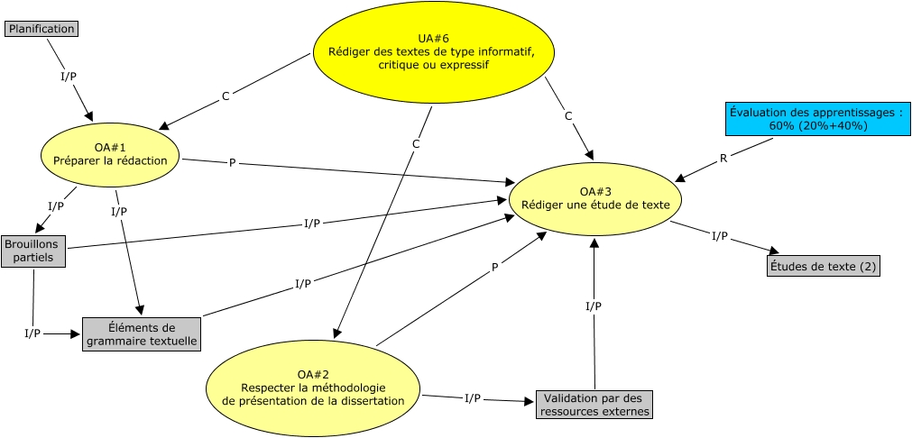 Cette carte de concepts créée avec IHMC CmapTools traite de: UA6, Planification I/P OA#1 Préparer la rédaction, Éléments de grammaire textuelle I/P OA#3 Rédiger une étude de texte, OA#1 Préparer la rédaction I/P Éléments de grammaire textuelle, UA#6 Rédiger des textes de type informatif, critique ou expressif C OA#3 Rédiger une étude de texte, OA#2 Respecter la méthodologie de présentation de la dissertation I/P Validation par des ressources externes, UA#6 Rédiger des textes de type informatif, critique ou expressif C OA#2 Respecter la méthodologie de présentation de la dissertation, OA#2 Respecter la méthodologie de présentation de la dissertation P OA#3 Rédiger une étude de texte, OA#1 Préparer la rédaction P OA#3 Rédiger une étude de texte, OA#3 Rédiger une étude de texte I/P Études de texte (2), Validation par des ressources externes I/P OA#3 Rédiger une étude de texte, OA#1 Préparer la rédaction I/P Brouillons partiels, Brouillons partiels I/P Éléments de grammaire textuelle, UA#6 Rédiger des textes de type informatif, critique ou expressif C OA#1 Préparer la rédaction, Évaluation des apprentissages : 60% (20%+40%) R OA#3 Rédiger une étude de texte, Brouillons partiels I/P OA#3 Rédiger une étude de texte