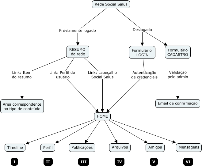Esse mapa conceitual, produzido no IHMC CmapTools, tem a informação relacionada a: SS-Fluxo1, HOME Perfil, RESUMO da rede Link: Item do resumo Área correspondente ao tipo de conteúdo, HOME Publicações, HOME Timeline, RESUMO da rede Link: Perfil do usuário HOME, Formulário LOGIN Autenticação de credenciais HOME, Rede Social Salus Deslogado Formulário CADASTRO, HOME Arquivos, Formulário CADASTRO Validação pelo admin Email de confirmação, HOME Mensagens, Rede Social Salus Préviamente logado RESUMO da rede, Rede Social Salus Deslogado Formulário LOGIN, RESUMO da rede Link: cabeçalho Social Salus HOME, HOME Amigos