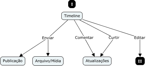 Esse mapa conceitual, produzido no IHMC CmapTools, tem a informação relacionada a: SS-Fluxo2-Timeline, Timeline Editar II, Timeline Curtir Atualizações, Timeline Enviar Publicação, Timeline Enviar Arquivo/Mídia, Timeline Comentar Atualizações