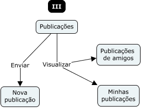 Esse mapa conceitual, produzido no IHMC CmapTools, tem a informação relacionada a: SS-Fluxo4-Postagens, Publicações Enviar Nova publicação, Publicações Visualizar Minhas publicações, Publicações Visualizar Publicações de amigos