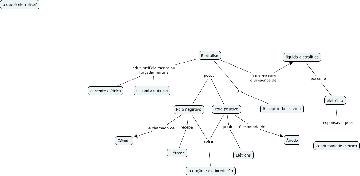 Esse mapa conceitual, produzido no IHMC CmapTools, tem a informação relacionada a: Vitor e Luan, Eletrólise só ocorre com a presenca de liquido eletrolitico, Eletrólise induz artificialmente ou forçadamente a corrente elétrica, Polo positivo perde Elétrons, Polo negativo é chamado de Cátodo, eletrôlito responsável pela condutividade elétrica, Polo positivo sofre redução e oxidoredução, Eletrólise possui Polo negativo, Polo negativo sofre redução e oxidoredução, Eletrólise é o Receptor do sistema, Polo negativo recebe Elétrons, Polo positivo é chamado de Ânodo, liquido eletrolitico possui o eletrôlito, Eletrólise induz artificialmente ou forçadamente a corrente química, Eletrólise possui Polo positivo