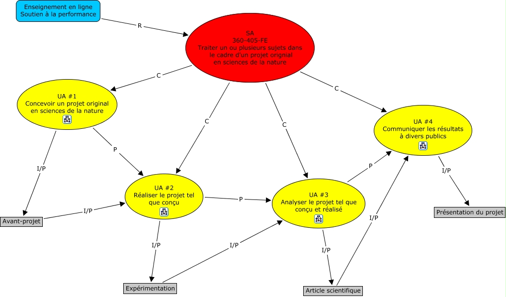 Cette carte de concepts créée avec IHMC CmapTools traite de: SA, UA #2 Réaliser le projet tel que conçu P UA #3 Analyser le projet tel que conçu et réalisé, Expérimentation I/P UA #3 Analyser le projet tel que conçu et réalisé, SA 360-405-FE Traiter un ou plusieurs sujets dans le cadre d'un projet orignial en sciences de la nature C UA #4 Communiquer les résultats à divers publics, SA 360-405-FE Traiter un ou plusieurs sujets dans le cadre d'un projet orignial en sciences de la nature C UA #1 Concevoir un projet original en sciences de la nature, UA #1 Concevoir un projet original en sciences de la nature P UA #2 Réaliser le projet tel que conçu, UA #2 Réaliser le projet tel que conçu I/P Expérimentation, Enseignement en ligne Soutien à la performance R SA 360-405-FE Traiter un ou plusieurs sujets dans le cadre d'un projet orignial en sciences de la nature, UA #3 Analyser le projet tel que conçu et réalisé P UA #4 Communiquer les résultats à divers publics, UA #3 Analyser le projet tel que conçu et réalisé I/P Article scientifique, UA #1 Concevoir un projet original en sciences de la nature I/P Avant-projet, SA 360-405-FE Traiter un ou plusieurs sujets dans le cadre d'un projet orignial en sciences de la nature C UA #2 Réaliser le projet tel que conçu, UA #4 Communiquer les résultats à divers publics I/P Présentation du projet, Avant-projet I/P UA #2 Réaliser le projet tel que conçu, SA 360-405-FE Traiter un ou plusieurs sujets dans le cadre d'un projet orignial en sciences de la nature C UA #3 Analyser le projet tel que conçu et réalisé, Article scientifique I/P UA #4 Communiquer les résultats à divers publics