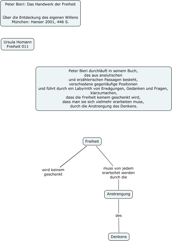 Dieses mit IHMC CmapTools erstellte CMap hat Informationen bezüglich: Ursula Homann Freiheit 011, Freiheit muss von jedem erarbeitet werden durch die Anstrengung, Anstrengung des Denkens