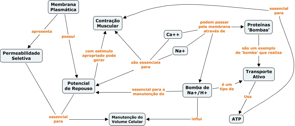 Esse mapa conceitual, produzido no IHMC CmapTools, tem a informação relacionada a: Mapa da Prova_TESTE_OpcaoB, Ca++ são essenciais para Potencial de Repouso, Membrana Plasmática apresenta Permeabilidade Seletiva, Potencial de Repouso essencial para Manutenção do Volume Celular, Ca++ podem passar pela membrana através de Bomba de Na+/H+, Ca++ podem passar pela membrana através de Na+, Membrana Plasmática possui Potencial de Repouso, Proteínas 'Bombas' são um exemplo de 'bomba' que realiza Transporte Ativo, ATP essencial para Contração Muscular, Na+ são essenciais para Potencial de Repouso, Permeabilidade Seletiva essencial para Manutenção do Volume Celular, Bomba de Na+/H+ influi Manutenção do Volume Celular, Bomba de Na+/H+ essencial para a manutenção do Potencial de Repouso, Ca++ são essenciais para Contração Muscular, Bomba de Na+/H+ é um tipo de Transporte Ativo, Ca++ podem passar pela membrana através de Proteínas 'Bombas', Potencial de Repouso com estimulo apropriado pode gerar Contração Muscular, Na+ são essenciais para Contração Muscular