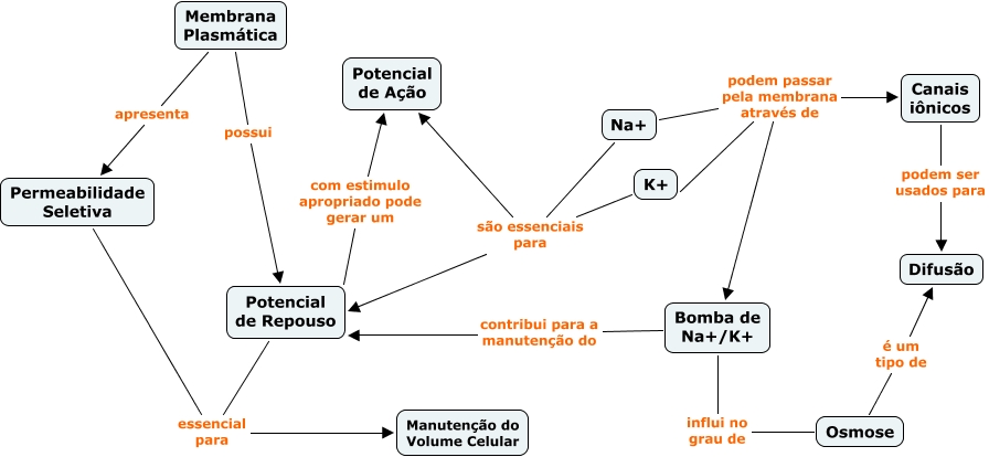 Esse mapa conceitual, produzido no IHMC CmapTools, tem a informação relacionada a: Mapa da Prova_TESTE, Membrana Plasmática apresenta Permeabilidade Seletiva, Na+ são essenciais para Potencial de Repouso, Potencial de Repouso essencial para Manutenção do Volume Celular, Na+ podem passar pela membrana através de Bomba de Na+/K+, Canais iônicos podem ser usados para Difusão, Membrana Plasmática possui Potencial de Repouso, Na+ podem passar pela membrana através de K+, Permeabilidade Seletiva essencial para Manutenção do Volume Celular, K+ são essenciais para Potencial de Repouso, Bomba de Na+/K+ contribui para a manutenção do Potencial de Repouso, Na+ são essenciais para Potencial de Ação, Bomba de Na+/K+ influi no grau de Osmose, Na+ podem passar pela membrana através de Canais iônicos, K+ são essenciais para Potencial de Ação, Potencial de Repouso com estimulo apropriado pode gerar um Potencial de Ação