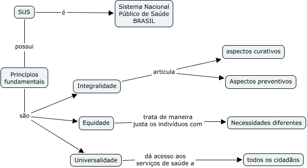 Esse mapa conceitual, produzido no IHMC CmapTools, tem a informação relacionada a: Uma Questão SUS 2012.2, Integralidade articula Aspectos preventivos, Universalidade dá acesso aos serviços de saúde a todos os cidadãos, Princípios fundamentais são Universalidade, Integralidade articula aspectos curativos, Princípios fundamentais são Integralidade, Equidade trata de maneira justa os indivíduos com Necessidades diferentes, Princípios fundamentais são Equidade, SUS possui Princípios fundamentais, SUS é Sistema Nacional Público de Saúde BRASIL
