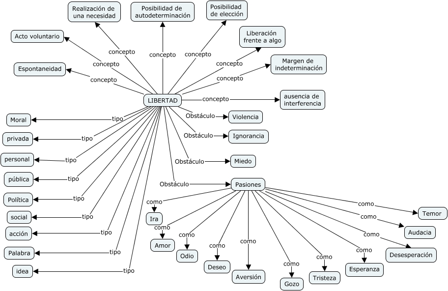 Este Cmap, tiene información relacionada con: Libertad, Pasiones como Amor, LIBERTAD concepto Margen de indeterminación, Pasiones como Aversión, LIBERTAD tipo Moral, LIBERTAD concepto Posibilidad de autodeterminación, LIBERTAD tipo social, Pasiones como Ira, LIBERTAD concepto Espontaneidad, Pasiones como Audacia, LIBERTAD concepto ausencia de interferencia, Pasiones como Gozo, LIBERTAD concepto Liberación frente a algo, LIBERTAD Obstáculo Violencia, LIBERTAD concepto Posibilidad de elección, LIBERTAD tipo acción, Pasiones como Temor, LIBERTAD concepto Realización de una necesidad, Pasiones como Tristeza, LIBERTAD tipo pública, Pasiones como Deseo