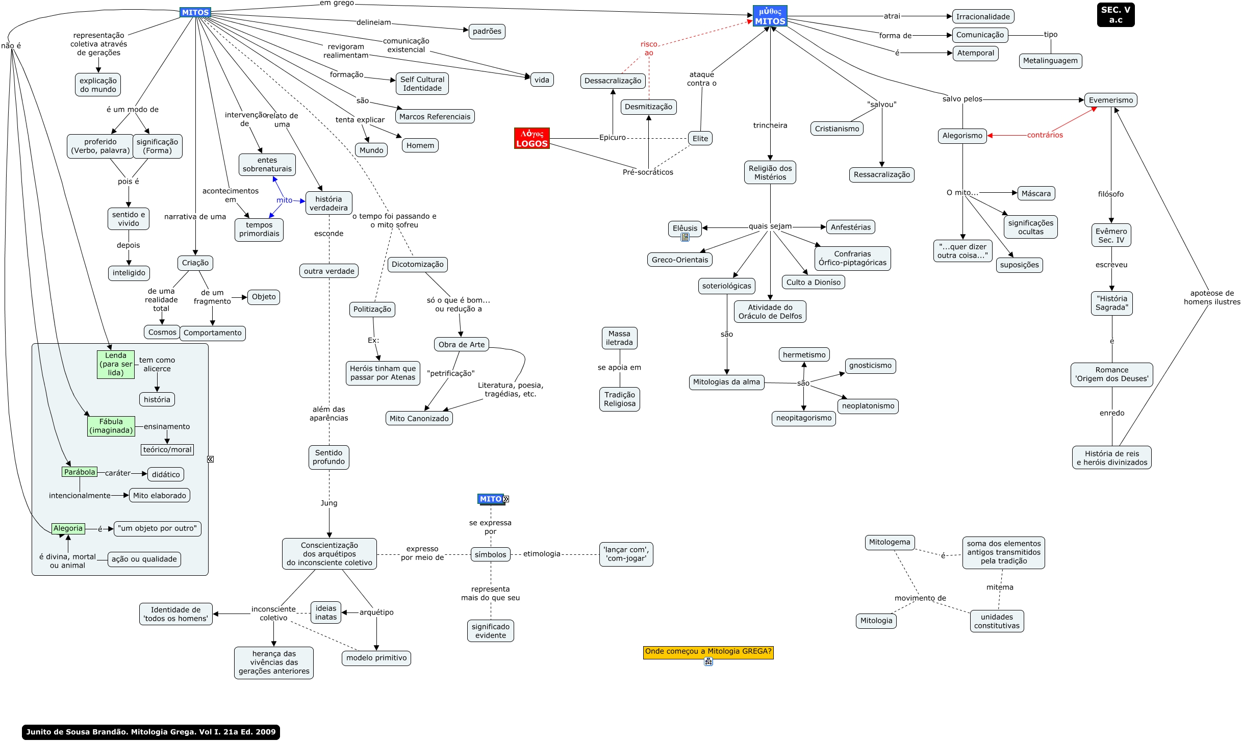 Esse mapa conceitual, produzido no IHMC CmapTools, tem a informação relacionada a: Mitologia GERAL, μύθος MITOS salvo pelos Evemerismo, Conscientização dos arquétipos do inconsciente coletivo inconsciente coletivo Identidade de 'todos os homens', Conscientização dos arquétipos do inconsciente coletivo inconsciente coletivo herança das vivências das gerações anteriores, Mitologias da alma são gnosticismo, sentido e vivido depois inteligido, MITOS é um modo de proferido (Verbo, palavra), Evêmero Sec. IV escreveu "História Sagrada", Alegorismo O mito... "...quer dizer outra coisa...", Fábula (imaginada) ensinamento teórico/moral, significação (Forma) pois é sentido e vivido, MITOS não é Alegoria, Religião dos Mistérios quais sejam Culto a Dioníso, Politização Ex: Heróis tinham que passar por Atenas, Evemerismo filósofo Evêmero Sec. IV, Intervenção de entes sobrenaturais criação Nova Realidade cosmoantropofania (Total ou Parcial), MITOS é um modo de significação (Forma), soma dos elementos antigos transmitidos pela tradição mitema unidades constitutivas, Conscientização dos arquétipos do inconsciente coletivo inconsciente coletivo ideias inatas, Religião dos Mistérios quais sejam Atividade do Oráculo de Delfos, MITOS o tempo foi passando e o mito sofreu Politização