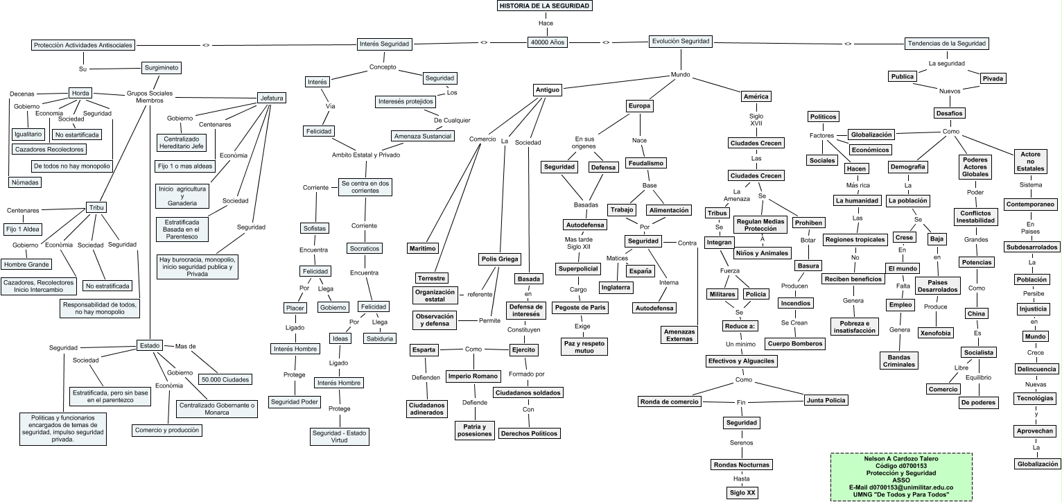 Este Cmap, tiene información relacionada con: HISTORIA DE LA SEGURIDAD, Aprovechan La Globalización, Reduce a: Se Policia, Contemporaneo En Paises Subdesarrolados, Feudalismo Base Alimentación, Reduce a: Se Militares, Europa En sus origenes Defensa, Baja en Paises Desarrolados, Autodefensa Mas tarde Siglo XII Superpolicial, Antiguo Comercio Maritimo, Socialista Equilibrio De poderes, Incendios Se Crean Cuerpo Bomberos, Socialista Libre Comercio, Evolución Seguridad <> Tendencias de la Seguridad, La población Se Baja, Interés Hombre Protege Seguridad Poder, Crese En El mundo, Felicidad Ambito Estatal y Privado Amenaza Sustancial, Actore no Estatales Sistema Contemporaneo, Polis Griega Permite Observación y defensa, Desafios Nuevos Pivada