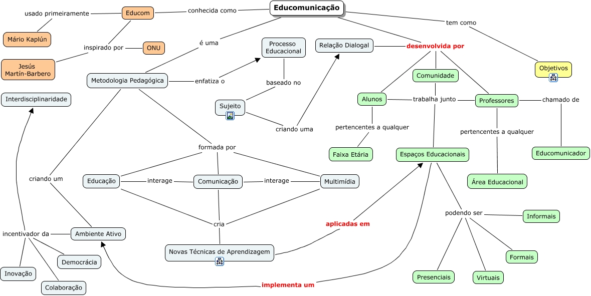 Esse mapa conceitual, produzido no IHMC CmapTools, tem a informação relacionada a: Educomunicacao_1, Comunicação cria Novas Técnicas de Aprendizagem, Educomunicação conhecida como Educom, Relação Dialogal desenvolvida por Comunidade, Educomunicação tem como Objetivos, Metodologia Pedagógica formada por Educação, Comunicação interage Multimídia, Educomunicação desenvolvida por Professores, Educom inspirado por Jesús Martín-Barbero, Relação Dialogal desenvolvida por Alunos, Comunidade trabalha junto Espaços Educacionais, Espaços Educacionais implementa um Ambiente Ativo, Ambiente Ativo incentivador da Colaboração, Espaços Educacionais podendo ser Informais, Ambiente Ativo incentivador da Democrácia, Alunos trabalha junto Professores, Educom usado primeiramente Mário Kaplún, Relação Dialogal desenvolvida por Professores, Espaços Educacionais podendo ser Virtuais, Professores chamado de Educomunicador, Professores pertencentes a qualquer Área Educacional