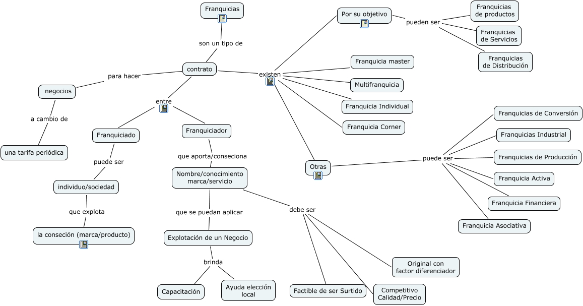 Este Cmap, tiene información relacionada con: franquicias expo, Franquicias de Servicios pueden ser Por su objetivo, Franquicia Asociativa puede ser Franquicia Activa, Franquicia Asociativa puede ser Franquicias Industrial, negocios a cambio de una tarifa periódica, Franquiciado puede ser individuo/sociedad, Nombre/conocimiento marca/servicio debe ser Original con factor diferenciador, contrato existen Por su objetivo, Franquicia Financiera puede ser Franquicia Activa, Otras existen Franquicia master, Otras puede ser Franquicia Activa, Ayuda elección local brinda Capacitación, Otras existen Por su objetivo, Otras existen Multifranquicia, Franquiciador que aporta/conseciona Nombre/conocimiento marca/servicio, contrato para hacer negocios, Franquicias son un tipo de contrato, contrato existen Franquicia Individual, Otras existen Franquicia Corner, contrato existen Multifranquicia, Franquicia Asociativa puede ser Franquicias de Producción