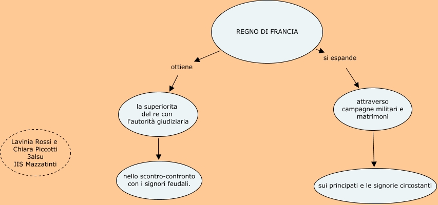 Questa Cmap, creata con IHMC CmapTools, contiene informazioni relative a: il regno di francia- lavinia rossi e chiara piccotti, attraverso campagne militari e matrimoni sui principati e le signorie circostanti, REGNO DI FRANCIA ottiene la superiorita del re con l'autorità giudiziaria, REGNO DI FRANCIA si espande attraverso campagne militari e matrimoni, la superiorita del re con l'autorità giudiziaria nello scontro-confronto con i signori feudali.