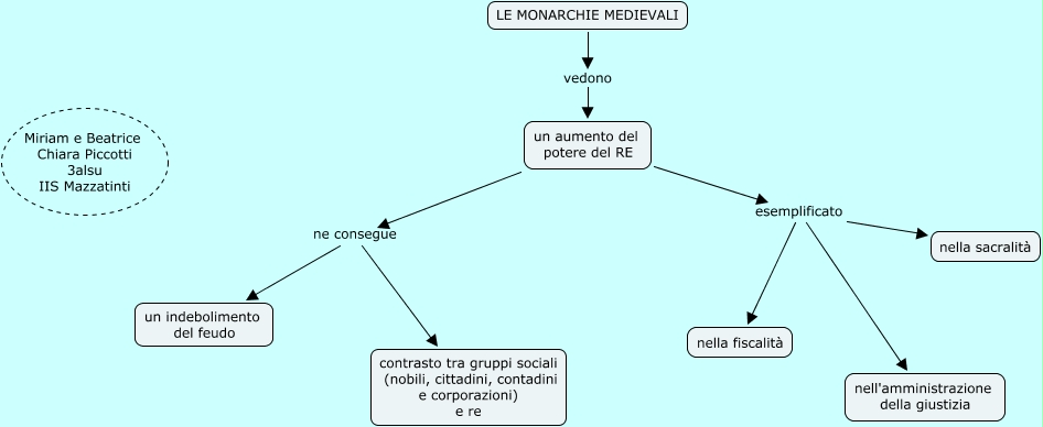 Questa Cmap, creata con IHMC CmapTools, contiene informazioni relative a: MONARCHIE MEDIEVALI Miriam Beatrice, un aumento del potere del RE esemplificato nella fiscalità, un aumento del potere del RE esemplificato nella sacralità, un aumento del potere del RE ne consegue un indebolimento del feudo, un aumento del potere del RE esemplificato nell'amministrazione della giustizia, un aumento del potere del RE ne consegue contrasto tra gruppi sociali (nobili, cittadini, contadini e corporazioni) e re, LE MONARCHIE MEDIEVALI vedono un aumento del potere del RE