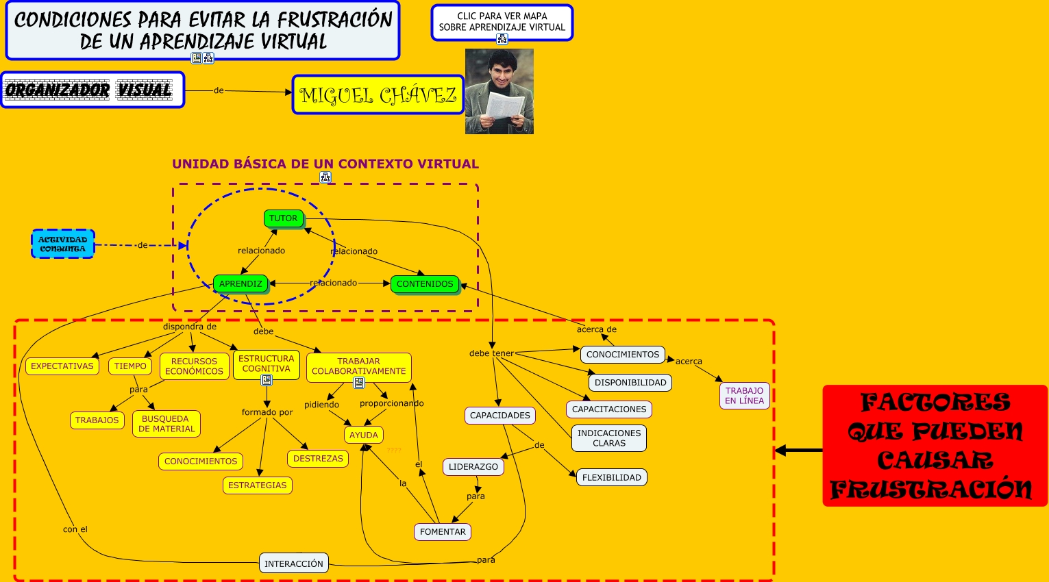 Este Cmap, tiene información relacionada con: FRUSTRACIÓN, CONOCIMIENTOS acerca de CONTENIDOS, CONOCIMIENTOS acerca TRABAJO EN LÍNEA, LIDERAZGO para FOMENTAR, TUTOR debe tener INDICACIONES CLARAS, FACTORES QUE PUEDEN CAUSAR FRUSTRACIÓN ???? ????, TUTOR debe tener DISPONIBILIDAD, CAPACIDADES para AYUDA, TUTOR debe tener CAPACIDADES, CAPACIDADES de FLEXIBILIDAD, APRENDIZ dispondra de TIEMPO, ACTIVIDAD CONJUNTA de, INTERACCIÓN con el APRENDIZ, ESTRUCTURA COGNITIVA formado por DESTREZAS, TUTOR debe tener CONOCIMIENTOS, TIEMPO para BUSQUEDA DE MATERIAL, RECURSOS ECONÓMICOS para TRABAJOS, APRENDIZ dispondra de EXPECTATIVAS, TRABAJAR COLABORATIVAMENTE pidiendo AYUDA, CAPACIDADES de LIDERAZGO, ESTRUCTURA COGNITIVA formado por CONOCIMIENTOS