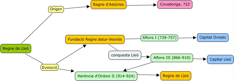 Este Cmap, tiene información relacionada con: Regne de Lleó, Regne de Lleó Evolució Herència d'Ordoni II (914-924), Alfons III (866-910) ???? Herència d'Ordoni II (914-924), conquesta Lleó ???? Alfons III (866-910), Fundació Regne àstur-lleonès Alfons I (739-757) Capital Oviedo, Regne de Lleó Evolució Fundació Regne àstur-lleonès, Regne d'Astúries ???? Covadonga, 722, Fundació Regne àstur-lleonès ???? conquesta Lleó, Alfons III (866-910) ???? Capital Lleó, Herència d'Ordoni II (914-924) ???? Regne de Lleó, Regne de Lleó Origen Regne d'Astúries