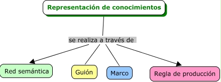 Este Cmap, tiene información relacionada con: RepresentaConocimientos, Representación de conocimientos se realiza a través de Regla de producción, Representación de conocimientos se realiza a través de Red semántica, Representación de conocimientos se realiza a través de Marco, Representación de conocimientos se realiza a través de Guión