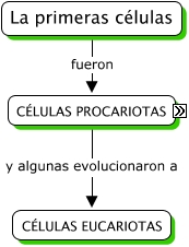 Este Cmap, tiene información relacionada con: 3.2 Las primeras células, CÉLULAS PROCARIOTAS y algunas evolucionaron a CÉLULAS EUCARIOTAS, CIANOBACTERIAS AUTÓTROFAS AEROBICAS FOTOSINTÉTICAS y algunas de estas a BACTERIAS HETRÓTROFAS AERÓBICAS, BACTERIAS HETERÓTROFAS ANAERÓBICAS FERMENTADORAS algunas evolucionaron a CIANOBACTERIAS AUTÓTROFAS AEROBICAS FOTOSINTÉTICAS, La primeras células fueron CÉLULAS PROCARIOTAS