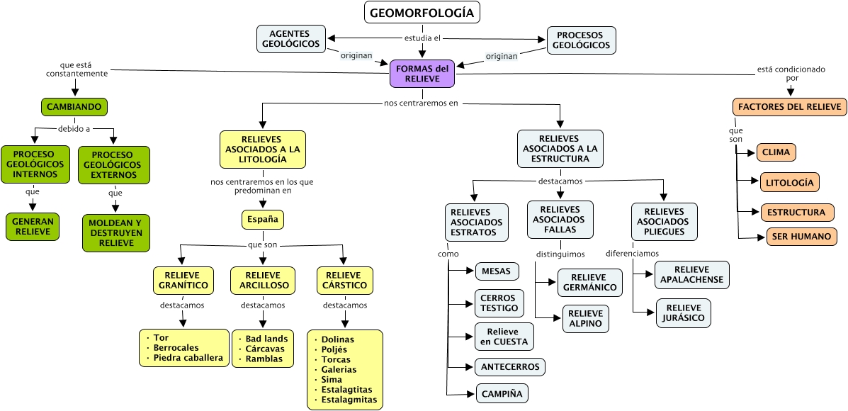 Este Cmap, tiene información relacionada con: Tema 14, España que son RELIEVE GRANÍTICO, FORMAS del RELIEVE está condicionado por FACTORES DEL RELIEVE, GEOMORFOLOGÍA estudia el FORMAS del RELIEVE, FORMAS del RELIEVE que está constantemente CAMBIANDO, CAMBIANDO debido a PROCESO GEOLÓGICOS EXTERNOS, RELIEVES ASOCIADOS ESTRATOS como ANTECERROS, RELIEVES ASOCIADOS PLIEGUES diferenciamos RELIEVE APALACHENSE, FACTORES DEL RELIEVE que son ESTRUCTURA, FORMAS del RELIEVE nos centraremos en RELIEVES ASOCIADOS A LA LITOLOGÍA, RELIEVE ARCILLOSO destacamos · Bad lands · Cárcavas · Ramblas, RELIEVES ASOCIADOS ESTRATOS como CAMPIÑA, FACTORES DEL RELIEVE que son SER HUMANO, GEOMORFOLOGÍA estudia el AGENTES GEOLÓGICOS, GEOMORFOLOGÍA estudia el PROCESOS GEOLÓGICOS, RELIEVES ASOCIADOS A LA ESTRUCTURA destacamos RELIEVES ASOCIADOS PLIEGUES, PROCESO GEOLÓGICOS EXTERNOS que MOLDEAN Y DESTRUYEN RELIEVE, CAMBIANDO debido a PROCESO GEOLÓGICOS INTERNOS, España que son RELIEVE CÁRSTICO, España que son RELIEVE ARCILLOSO, PROCESOS GEOLÓGICOS originan FORMAS del RELIEVE