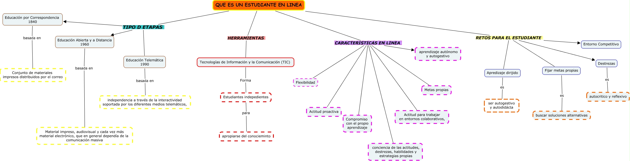 Este Cmap, tiene información relacionada con: actividad 4 moni, Educación Telemática 1990 basada en independencia a través de la interactividad soportada por los diferentes medios telemáticos,, Apredizaje dirijido es ser autogestivo y autodidácta, Educación Abierta y a Distancia 1960 basada en Material impreso, audiovisual y cada vez más material electrónico, que en general dependía de la comunicación masiva, QUE ES UN ESTUDIANTE EN LINEA TIPO D ETAPAS Educación por Correspondencia 1840, QUE ES UN ESTUDIANTE EN LINEA RETOS PARA EL ESTUDIANTE Entorno Competitivo, QUE ES UN ESTUDIANTE EN LINEA RETOS PARA EL ESTUDIANTE Apredizaje dirijido, Tecnologías de Información y la Comunicación (TIC) Forma Estudiantes indepedientes, QUE ES UN ESTUDIANTE EN LINEA TIPO D ETAPAS Educación Telemática 1990, QUE ES UN ESTUDIANTE EN LINEA RETOS PARA EL ESTUDIANTE Fijar metas propias, QUE ES UN ESTUDIANTE EN LINEA CARACTERISTICAS EN LINEA Actitud para trabajar en entornos colaborativos,, Estudiantes indepedientes para apropiarse del conocieminto, QUE ES UN ESTUDIANTE EN LINEA CARACTERISTICAS EN LINEA Flexibilidad, QUE ES UN ESTUDIANTE EN LINEA CARACTERISTICAS EN LINEA aprendizaje autónomo y autogestivo, QUE ES UN ESTUDIANTE EN LINEA HERRAMIENTAS Tecnologías de Información y la Comunicación (TIC), Destrezas es autocritico y reflexivo, Educación por Correspondencia 1840 basada en Conjunto de materiales impresos distribuidos por el correo, QUE ES UN ESTUDIANTE EN LINEA RETOS PARA EL ESTUDIANTE Destrezas, QUE ES UN ESTUDIANTE EN LINEA CARACTERISTICAS EN LINEA Compromiso con el propio aprendizaje, QUE ES UN ESTUDIANTE EN LINEA CARACTERISTICAS EN LINEA conciencia de las actitudes, destrezas, habilidades y estrategias propias, QUE ES UN ESTUDIANTE EN LINEA CARACTERISTICAS EN LINEA Actitud proactiva