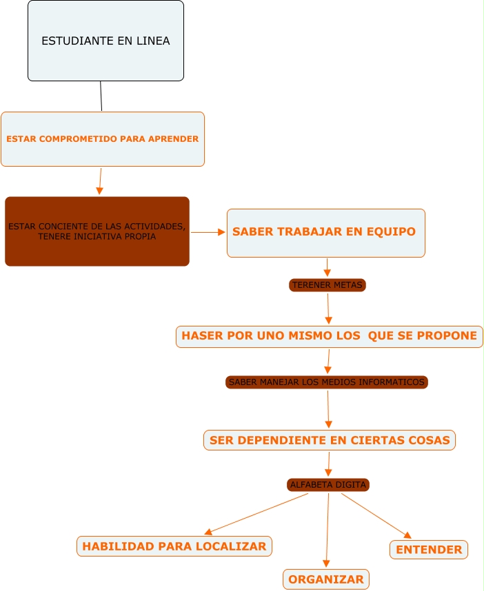 Este Cmap, tiene información relacionada con: ESTUDIANTE EN LINEA, HASER POR UNO MISMO LOS QUE SE PROPONE SABER MANEJAR LOS MEDIOS INFORMATICOS SER DEPENDIENTE EN CIERTAS COSAS, SER DEPENDIENTE EN CIERTAS COSAS ALFABETA DIGITA ENTENDER, ESTAR COMPROMETIDO PARA APRENDER ESTAR CONCIENTE DE LAS ACTIVIDADES, TENERE INICIATIVA PROPIA SABER TRABAJAR EN EQUIPO, SER DEPENDIENTE EN CIERTAS COSAS ALFABETA DIGITA ORGANIZAR, SER DEPENDIENTE EN CIERTAS COSAS ALFABETA DIGITA HABILIDAD PARA LOCALIZAR, ESTUDIANTE EN LINEA ???? ESTAR COMPROMETIDO PARA APRENDER, SABER TRABAJAR EN EQUIPO TERENER METAS HASER POR UNO MISMO LOS QUE SE PROPONE