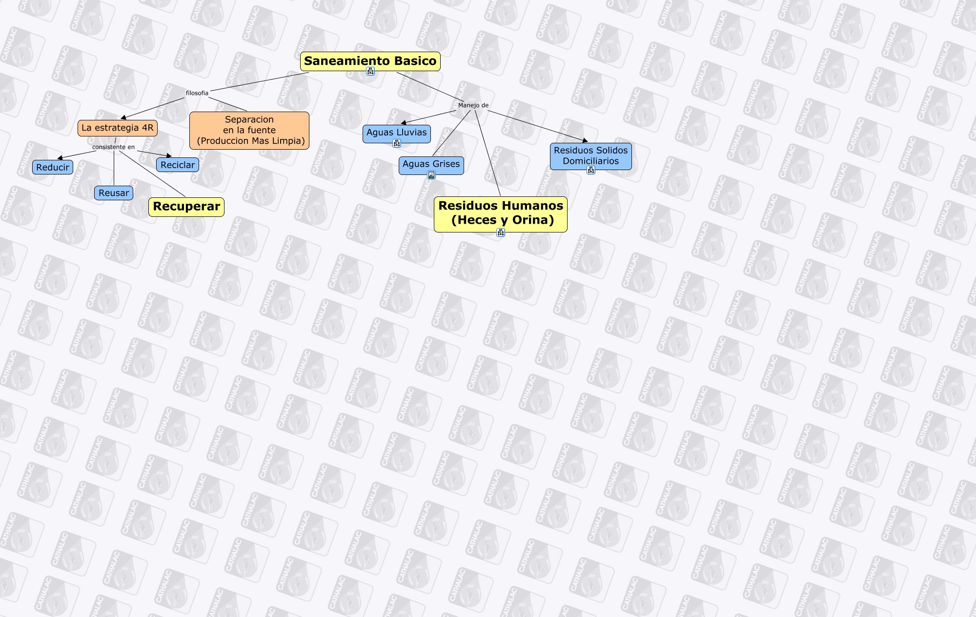 Este Cmap, tiene información relacionada con: Saneamiento, Saneamiento Basico Manejo de Residuos Solidos Domiciliarios, Saneamiento Basico Manejo de Aguas Grises, La estrategia 4R consistente en Recuperar, La estrategia 4R consistente en Reusar, Saneamiento Basico Manejo de Residuos Humanos (Heces y Orina), Saneamiento Basico Manejo de Aguas Lluvias, La estrategia 4R consistente en Reciclar, Saneamiento Basico filosofia Separacion en la fuente (Produccion Mas Limpia), La estrategia 4R consistente en Reducir, Saneamiento Basico filosofia La estrategia 4R