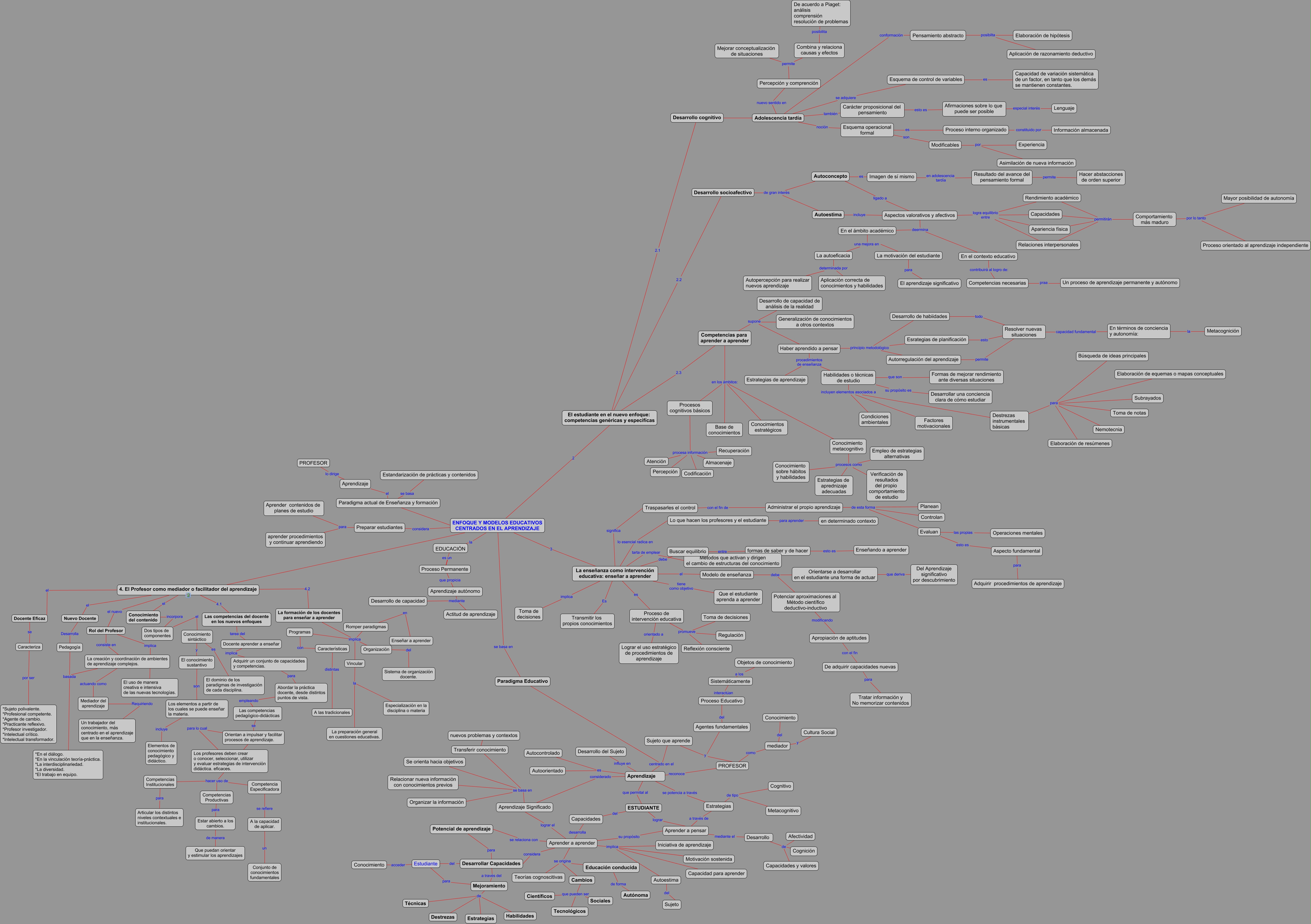 Este Cmap, tiene información relacionada con: El Profesor como mediador o facilitador del aprendizaje, Aprender a aprender lograr el Aprendizaje Significado, Desarrollo cognitivo ???? Adolescencia tardía, Preparar estudiantes para Aprender contenidos de planes de estudio, Comportamiento más maduro por lo tanto Mayor posibilidad de autonomía, Vincular la Especialización en la disciplina o materia, La autoeficacia determinada por Autopercepción para realizar nuevos aprendizaje, Aprender a pensar mediante el Desarrollo, La formación de los docentes para enseñar a aprender implica Vincular, Los elementos a partir de los cuales se puede enseñar la materia. incluye Elementos de conocimiento pedagógico y didáctico., En términos de conciencia y autonomía: la Metacognición, La autoeficacia determinada por Aplicación correcta de conocimientos y habilidades, Resultado del avance del pensamiento formal permite Hacer abstacciones de orden superior, Combina y relaciona causas y efectos posibilita De acuerdo a Piaget: análisis comprensión resolución de problemas, Buscar equilibrio entre formas de saber y de hacer, Proceso interno organizado constituido por Información almacenada, Orientan a impulsar y facilitar procesos de aprendizaje. hacer uso de Competencia Especificadora, Desarrollo de habiidades todo ????, Competencias para aprender a aprender supone Haber aprendido a pensar, Lo que hacen los profesores y el estudiante para aprender en determinado contexto, Proceso de intervención educativa orientado a Lograr el uso estratégico de procedimientos de aprendizaje