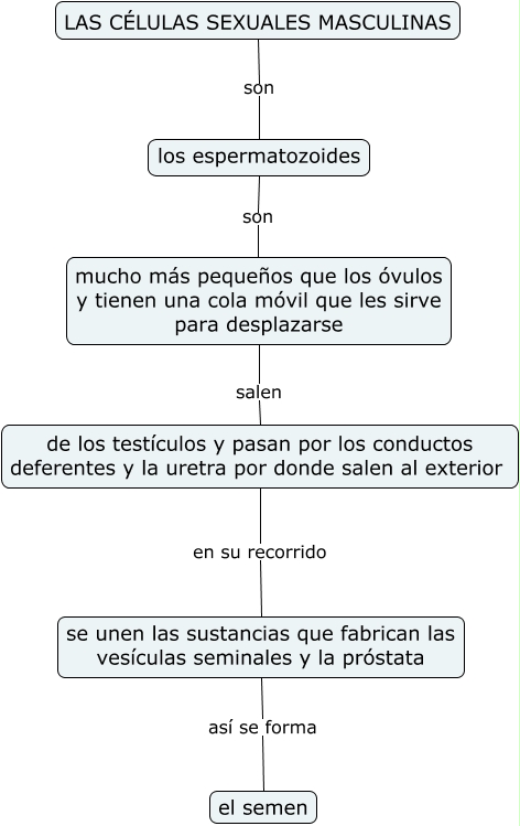 Este Cmap, tiene información relacionada con: Las células sexuales masculinas, los espermatozoides son mucho más pequeños que los óvulos y tienen una cola móvil que les sirve para desplazarse, de los testículos y pasan por los conductos deferentes y la uretra por donde salen al exterior en su recorrido se unen las sustancias que fabrican las vesículas seminales y la próstata, mucho más pequeños que los óvulos y tienen una cola móvil que les sirve para desplazarse salen de los testículos y pasan por los conductos deferentes y la uretra por donde salen al exterior, LAS CÉLULAS SEXUALES MASCULINAS son los espermatozoides, se unen las sustancias que fabrican las vesículas seminales y la próstata así se forma el semen