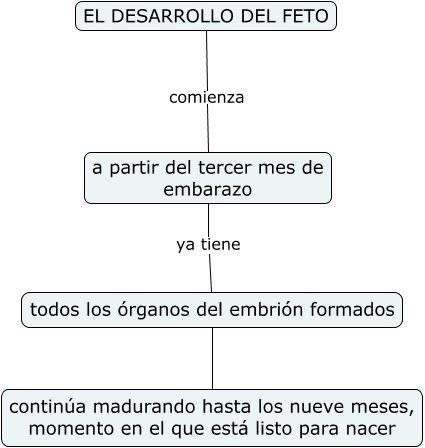 Este Cmap, tiene información relacionada con: El desarrollo del feto, EL DESARROLLO DEL FETO comienza a partir del tercer mes de embarazo, todos los órganos del embrión formados continúa madurando hasta los nueve meses, momento en el que está listo para nacer, a partir del tercer mes de embarazo ya tiene todos los órganos del embrión formados