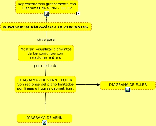 Este Cmap, tiene información relacionada con: REPRESENTACIÓN GRÁFICA DE LOS CONJUNTOS, REPRESENTACIÓN GRÁFICA DE CONJUNTOS sirve para Mostrar, visualizar elementos de los conjuntos con relaciones entre si, DIAGRAMAS DE VENN - EULER Son regiones del plano limitados por lineas o figuras geométricas. ' DIAGRAMA DE EULER, Representamos graficamente con Diagramas de VENN - EULER . REPRESENTACIÓN GRÁFICA DE CONJUNTOS, Mostrar, visualizar elementos de los conjuntos con relaciones entre si por medio de DIAGRAMAS DE VENN - EULER Son regiones del plano limitados por lineas o figuras geométricas., DIAGRAMAS DE VENN - EULER Son regiones del plano limitados por lineas o figuras geométricas. . DIAGRAMA DE VENN
