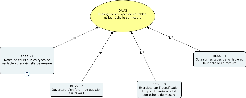 Cette carte de concepts créée avec IHMC CmapTools traite de: OA2, RESS - 4 Quiz sur les types de variable et leur échelle de mesure I/P OA#2 Distinguer les types de variables et leur échelle de mesure, RESS - 1 Notes de cours sur les types de variable et leur échelle de mesure I/P OA#2 Distinguer les types de variables et leur échelle de mesure, RESS - 3 Exercices sur l'identification du type de variable et de son échelle de mesure I/P OA#2 Distinguer les types de variables et leur échelle de mesure, RESS - 2 Ouverture d'un forum de question sur l'UA#1 I/P OA#2 Distinguer les types de variables et leur échelle de mesure