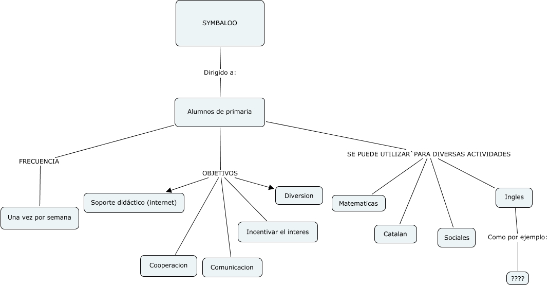 Este Cmap, tiene información relacionada con: SYMBALOO, Alumnos de primaria OBJETIVOS Incentivar el interes, Alumnos de primaria OBJETIVOS Cooperacion, Alumnos de primaria SE PUEDE UTILIZAR`PARA DIVERSAS ACTIVIDADES Ingles, Alumnos de primaria OBJETIVOS Comunicacion, SYMBALOO Dirigido a: Alumnos de primaria, Alumnos de primaria SE PUEDE UTILIZAR`PARA DIVERSAS ACTIVIDADES Matematicas, Alumnos de primaria OBJETIVOS Diversion, Ingles Como por ejemplo: ????, Alumnos de primaria FRECUENCIA Una vez por semana, Alumnos de primaria SE PUEDE UTILIZAR`PARA DIVERSAS ACTIVIDADES Sociales, Alumnos de primaria OBJETIVOS Soporte didáctico (internet), Alumnos de primaria SE PUEDE UTILIZAR`PARA DIVERSAS ACTIVIDADES Catalan