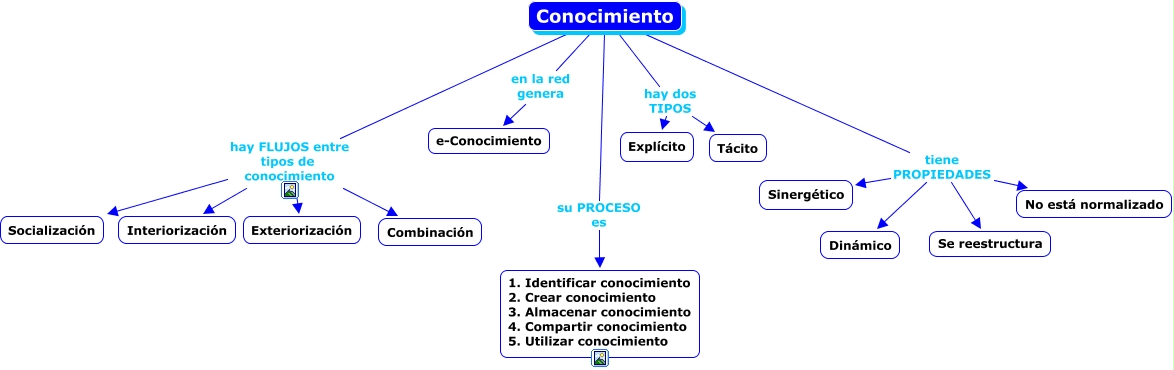 Este Cmap, tiene información relacionada con: CONOCIMIENTO, Conocimiento su PROCESO es 1. Identificar conocimiento 2. Crear conocimiento 3. Almacenar conocimiento 4. Compartir conocimiento 5. Utilizar conocimiento, Conocimiento tiene PROPIEDADES Sinergético, Conocimiento tiene PROPIEDADES Se reestructura, Conocimiento tiene PROPIEDADES No está normalizado, Conocimiento hay FLUJOS entre tipos de conocimiento Interiorización, Conocimiento hay FLUJOS entre tipos de conocimiento Socialización, Conocimiento en la red genera e-Conocimiento, Conocimiento tiene PROPIEDADES Dinámico, Conocimiento hay dos TIPOS Explícito, Conocimiento hay FLUJOS entre tipos de conocimiento Exteriorización, Conocimiento hay dos TIPOS Tácito, Conocimiento hay FLUJOS entre tipos de conocimiento Combinación
