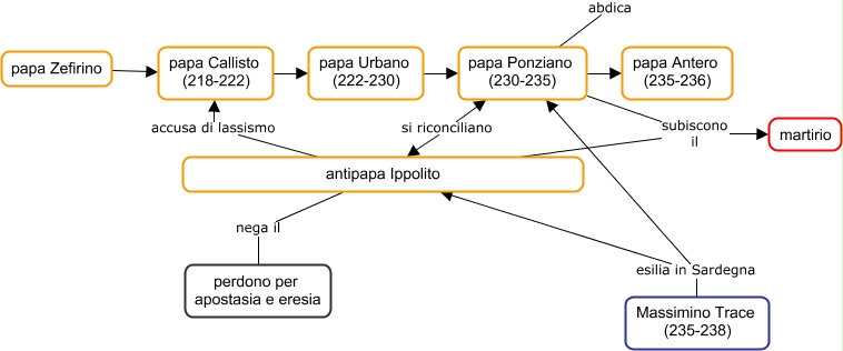 Questa Cmap, creata con IHMC CmapTools, contiene informazioni relative a: y01 antipapa Ippolito, Massimino Trace (235-238) esilia in Sardegna papa Ponziano (230-235), papa Ponziano (230-235) subiscono il martirio, papa Ponziano (230-235) papa Antero (235-236), Massimino Trace (235-238) esilia in Sardegna antipapa Ippolito, antipapa Ippolito subiscono il martirio, antipapa Ippolito accusa di lassismo papa Callisto (218-222), papa Urbano (222-230) papa Ponziano (230-235), antipapa Ippolito nega il perdono per apostasia e eresia, papa Callisto (218-222) papa Urbano (222-230), papa Zefirino papa Callisto (218-222)