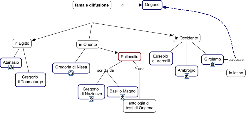 Questa Cmap, creata con IHMC CmapTools, contiene informazioni relative a: 54 Origene - Influssi, in Occidente Eusebio di Vercelli, in Oriente Gregoria di Nissa, in Egitto Atanasio, Philocalia scritta da Gregorio di Nazianzo, fama e diffusione in in Oriente, Girolamo tradusse Origene, in Occidente Ambrogio, fama e diffusione in in Occidente, fama e diffusione in in Egitto, in Oriente Philocalia, Philocalia scritta da Basilio Magno, Girolamo tradusse in latino, fama e diffusione di Origene, Philocalia è una antologia di testi di Origene, in Occidente Girolamo, in Egitto Gregorio il Taumaturgo