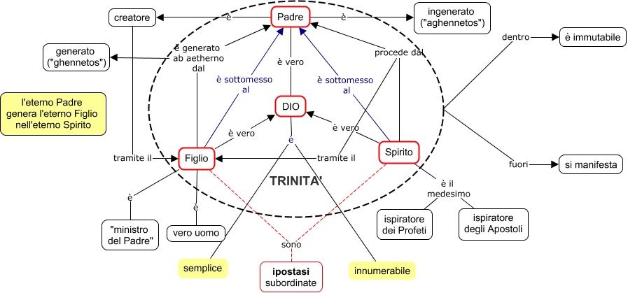 Questa Cmap, creata con IHMC CmapTools, contiene informazioni relative a: 56 Origene - Teologia trinitaria, TRINITA' dentro è immutabile, Figlio è vero uomo, Padre è vero DIO, Figlio è "ministro del Padre", Spirito è sottomesso al Padre, DIO è semplice, Padre è creatore, Spirito è il medesimo ispiratore dei Profeti, Spirito è vero DIO, Spirito è il medesimo ispiratore degli Apostoli, DIO è innumerabile, Spirito sono ipostasi subordinate, Figlio è vero DIO, Spirito procede dal Padre, Padre è ingenerato ("aghennetos"), Figlio è sottomesso al Padre, Spirito procede dal tramite il Figlio, creatore tramite il Figlio, Figlio sono ipostasi subordinate, Figlio è generato ab aetherno dal Padre
