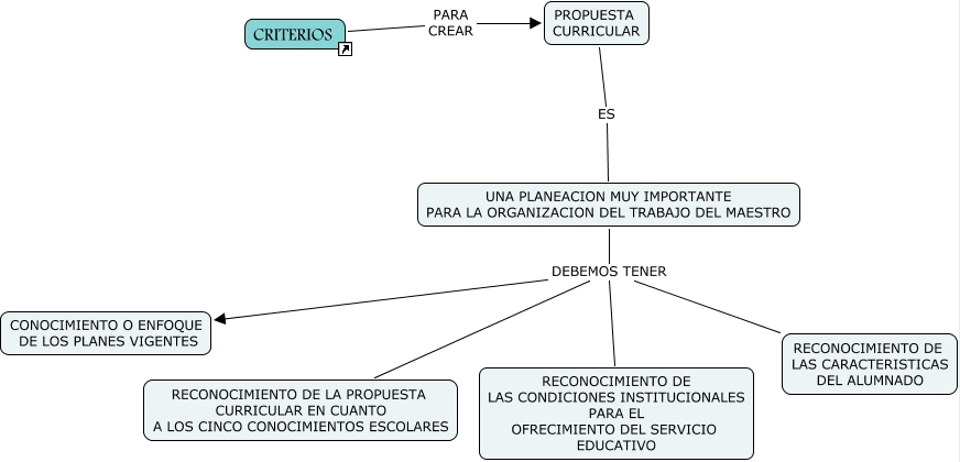 Este Cmap, tiene información relacionada con: PROPUESTA CURRICULAR, UNA PLANEACION MUY IMPORTANTE PARA LA ORGANIZACION DEL TRABAJO DEL MAESTRO DEBEMOS TENER RECONOCIMIENTO DE LA PROPUESTA CURRICULAR EN CUANTO A LOS CINCO CONOCIMIENTOS ESCOLARES, CRITERIOS PARA CREAR PROPUESTA CURRICULAR, PROPUESTA CURRICULAR ES UNA PLANEACION MUY IMPORTANTE PARA LA ORGANIZACION DEL TRABAJO DEL MAESTRO, UNA PLANEACION MUY IMPORTANTE PARA LA ORGANIZACION DEL TRABAJO DEL MAESTRO DEBEMOS TENER RECONOCIMIENTO DE LAS CONDICIONES INSTITUCIONALES PARA EL OFRECIMIENTO DEL SERVICIO EDUCATIVO, UNA PLANEACION MUY IMPORTANTE PARA LA ORGANIZACION DEL TRABAJO DEL MAESTRO DEBEMOS TENER CONOCIMIENTO O ENFOQUE DE LOS PLANES VIGENTES, UNA PLANEACION MUY IMPORTANTE PARA LA ORGANIZACION DEL TRABAJO DEL MAESTRO DEBEMOS TENER RECONOCIMIENTO DE LAS CARACTERISTICAS DEL ALUMNADO