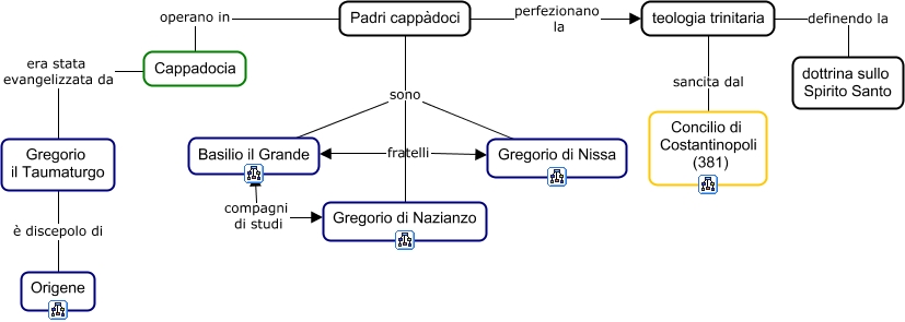 Questa Cmap, creata con IHMC CmapTools, contiene informazioni relative a: 70 Padri cappadoci, Cappadocia era stata evangelizzata da Gregorio il Taumaturgo, Padri cappàdoci sono Basilio il Grande, teologia trinitaria sancita dal Concilio di Costantinopoli (381), Gregorio il Taumaturgo è discepolo di Origene, Padri cappàdoci perfezionano la teologia trinitaria, teologia trinitaria definendo la dottrina sullo Spirito Santo, Padri cappàdoci sono Gregorio di Nazianzo, Padri cappàdoci operano in Cappadocia, Padri cappàdoci sono Gregorio di Nissa