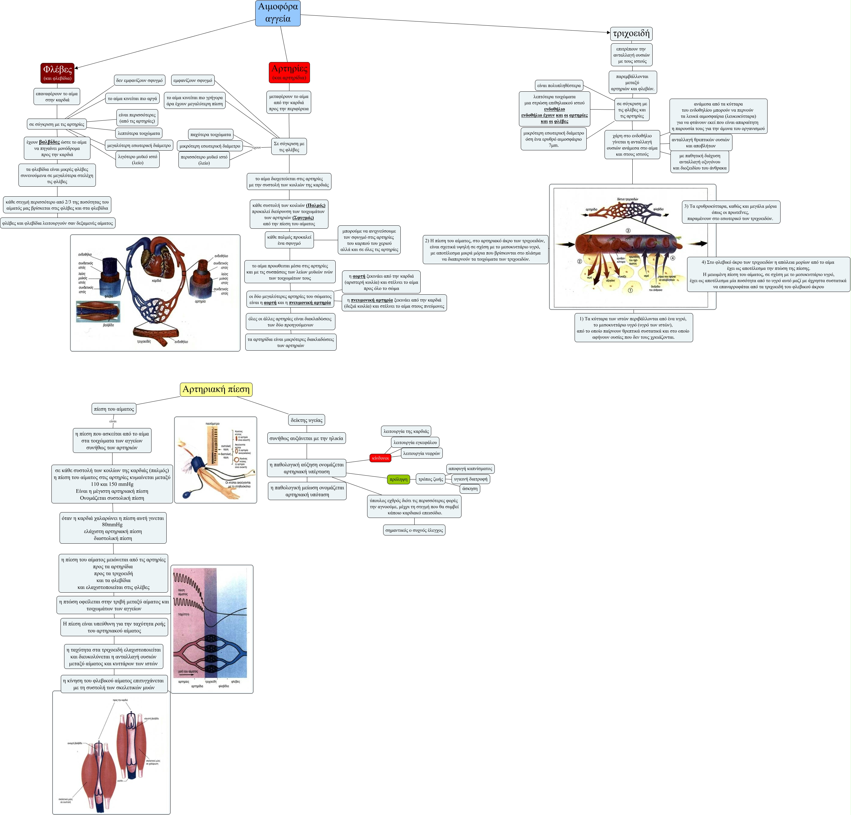 Αυτός ο εννοιολογικός χάρτης, που δημιουργήθηκε με το IHMC Cmap Tools, περιέχει πλήροφορίες που σχετίζονται με: aggeia, πρόληψη τρόπος ζωής, η πτώση οφείλεται στην τριβή μεταξύ αίματος και τοιχωμάτων των αγγείων Η πίεση είναι υπεύθυνη για την ταχύτητα ροής του αρτηριακού αίματος, σε σύγκριση με τις αρτηρίες δεν εμφανίζουν σφυγμό, παρεμβάλλονται μεταξύ αρτηριών και φλεβών. σε σύγκριση με τις φλέβες και τις αρτηρίες, η παθολογική αύξηση ονομάζεται αρτηριακή υπέρταση κίνδυνοι, Αρτηριακή πίεση πίεση του αίματος, οι δύο μεγαλύτερες αρτηρίες του σώματος είναι η αορτή και η πνευμονική αρτηρία η αορτή ξεκινάει από την καρδιά (αριστερή κοιλία) και στέλνει το αίμα προς όλο το σώμα, χάρη στο ενδοθήλιο γίνεται η ανταλλαγή ουσιών ανάμεσα στο αίμα και στους ιστούς, σε σύγκριση με τις φλέβες και τις αρτηρίες είναι πολυπληθέστερα, οι δύο μεγαλύτερες αρτηρίες του σώματος είναι η αορτή και η πνευμονική αρτηρία η πνευμονική αρτηρία ξεκινάει από την καρδιά (δεξιά κοιλία) και στέλνει το αίμα στους πνεύμονες, 1) Τα κύτταρα των ιστών περιβάλλονται από ένα υγρό, το μεσοκυττάριο υγρό (υγρό των ιστών), από το οποίο παίρνουν θρεπτικά συστατικά και στο οποίο αφήνουν ουσίες που δεν τους χρειάζονται., Σε σύγκριση με τις φλέβες εμφανίζουν σφυγμό, χάρη στο ενδοθήλιο γίνεται η ανταλλαγή ουσιών ανάμεσα στο αίμα και στους ιστούς ανταλλαγή θρεπτικών ουσιών και αποβλήτων, η ταχύτητα στα τριχοειδή ελαχιστοποιείται και διευκολύνεται η ανταλλαγή ουσιών μεταξύ αίματος και κυττάρων των ιστών η κίνηση του φλεβικού αίματος επιτυγχάνεται με τη συστολή των σκελετικών μυών, Σε σύγκριση με τις φλέβες το αίμα κινείται πιο γρήγορα άρα έχουν μεγαλύτερη πίεση, έχουν βαλβίδες ώστε το αίμα να πηγαίνει μονόδρομα προς την καρδιά τα φλεβίδια είναι μικρές φλέβες συνενούμενα σε μεγαλύτερα στελέχη τις φλέβες, σε σύγκριση με τις φλέβες και τις αρτηρίες μικρότερη εσωτερική διάμετρο όση ένα ερυθρό αιμοσφάιριο 7μm., συνήθως αυξάνεται με την ηλικία η παθολογική αύξηση ονομάζεται αρτηριακή υπέρταση, η παθολογική αύξηση ονομάζεται αρτηριακή υπέρταση ύπουλος εχθρός διότι τις περισσότερες φορές την αγνοούμε, μέχρι τη στιγμή που θα συμβεί κάποιο καρδιακό επεισόδιο., οι δύο μεγαλύτερες αρτηρίες του σώματος είναι η αορτή και η πνευμονική αρτηρία όλες οι άλλες αρτηρίες είναι διακλαδώσεις των δύο προηγούμενων