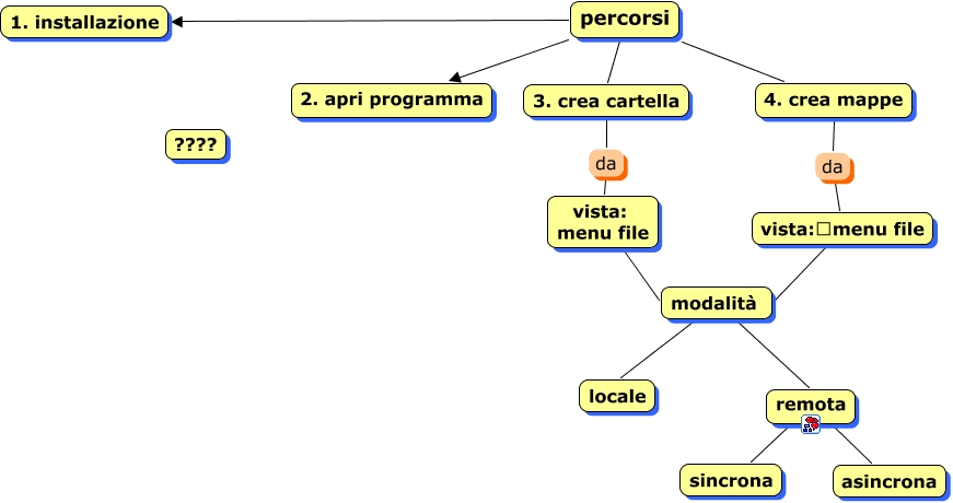 Questa Cmap, creata con IHMC CmapTools, contiene informazioni relative a: passi-iniziali, modalità remota, 3. crea cartella da vista: menu file, remota sincrona, vista: menu file modalità, modalità locale, 4. crea mappe da vista: menu file, remota asincrona, percorsi 3. crea cartella, percorsi 1. installazione, percorsi 4. crea mappe, percorsi 2. apri programma, vista: menu file modalità